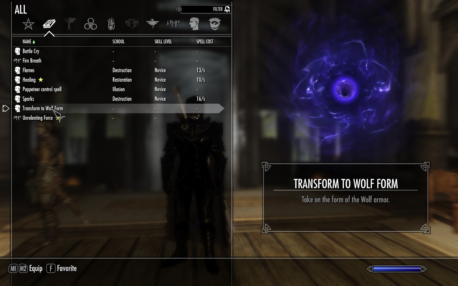 As you can see in the screenshots, you equip the base "Berserker Cuirass" and "Berserker Boots", and you get a spell to transform it into the Skull form of the armor. When you transform into the Skull form, you get a last spell to transform into the last form, the Wolf form. Also, something you should have in mind, I made the skin of the base cuirass compatible with Zenl's Blackswordsman Armor's Iron Arm, so equipping anything but those for gauntlets will probably result in a huge gap at the left arm.